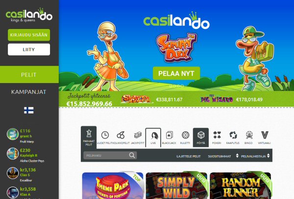 Casilando on moderni ja piristävän pirteä pelielämys jossa jokainen osaa pelata intuitiivisesti. Helppokäyttöinen selainkasino toimii sujuvasti niin tietokoneella kuin mobiilissakin, joten ihan kasinoaloittelijakin osaa heti pelata - varsinkin kun sivusto on kokonaan suomenkielinen.