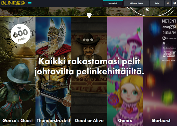 Mitään uutta Dunder ei sinällään tuo pelaajille, joten siltä uupuu selvästi jokin tietty valttikortti tai erityisominaisuus, mutta se ei tee Dunderista millään tavalla huonoa kasinoa. Päinvastoin Dunder on kasino, jota voi erinomaisesti suositella kenelle tahansa! Kasinolla on yli 600 peliä usealta eri valmistajalta, live casino, suomenkielinen käyttötuki sekä ilmaisia pelikierroksia, jotka saa heti ilman talletusta.