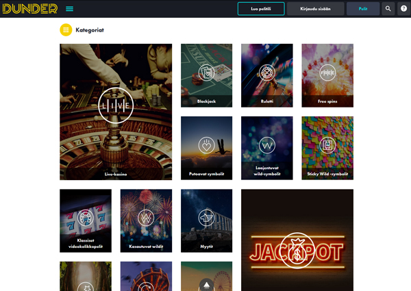 Dunder on kasino, jolla on raikas ote ja kaikki perusasiat kunnossa. Vaikka sillä ei olekaan mitään varsinaista ”ässää hihassa” niin sitä ei kannata missään nimessä ohittaa, sillä kasinopelien puolesta tarjonta on monipuolinen ja kattava. Kaiken lisäksi se on lisensoitu Maltalle, eli voitot tulevat tilille verovapaana.