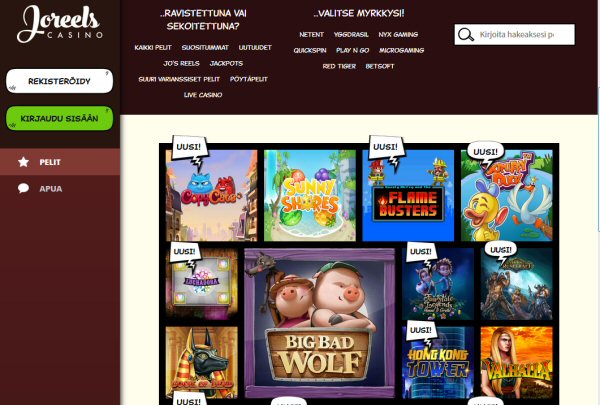 Joreels on vuoden 2017 lupaavimpia kasinouutuuksia. Sen pelit ovat maailmanluokkaa ja kaikki palvelut viritetty suomalaisille. Kasino on suomennettu, asiakaspalvelu toimii suomeksi, bonukset ja tarjoukset on räätälöity suomalaisille ja kaikki voitot ovat verottomia suomalaispelaajille.
