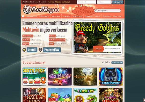 LeoVegas on uusi casino, jonka pääpaino on mobiilipelaamisessa. Casino toimii toki suoraan selaimessa, kuten muutkin, mutta aivan erityisesti se on panostanut mukavaan mobiilipelaamiseen nykyaikaisilla älypuhelimilla. LeoVegasin puhelincasino on hienoin tähän asti näkemistämme, joten mobiilipelien ystävälle se on todellinen nappivalinta.