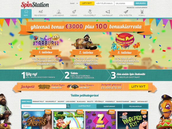 Saat Spinstationilta yhteensä jop 3000 € bonusta kolmeen ensimmäiseen talletukseesi.
