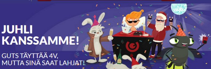 Guts kutsuu juhlimaan 4-vuotissynttäreidensä etkoja ja keräämään ilmaikierroksia.